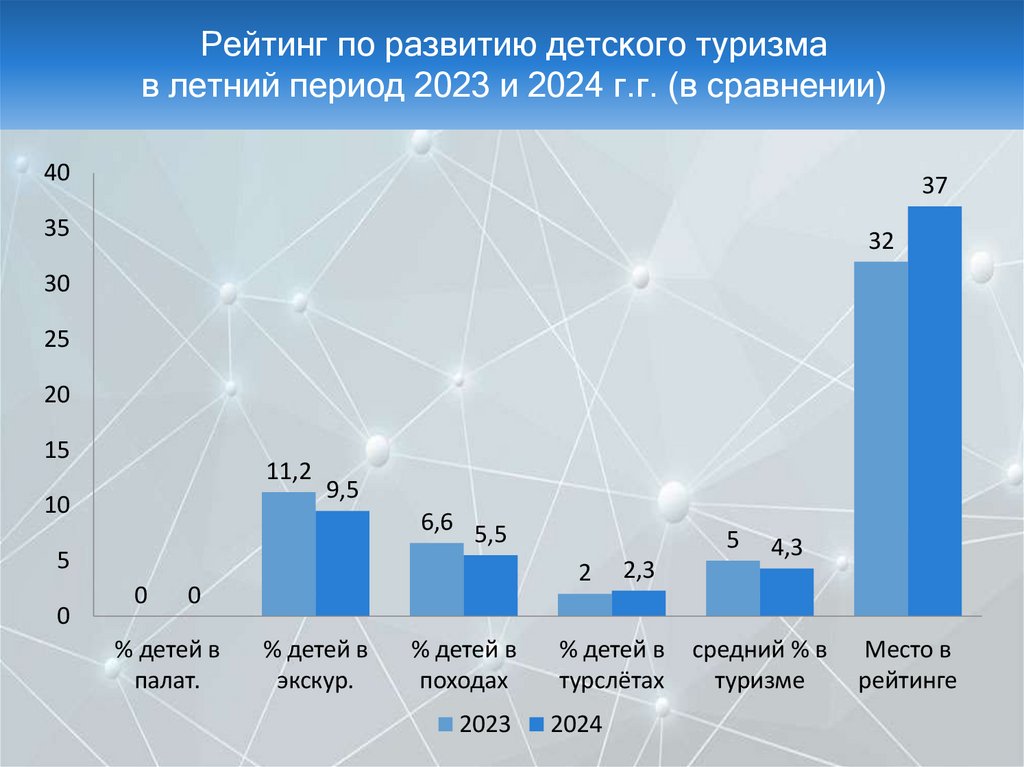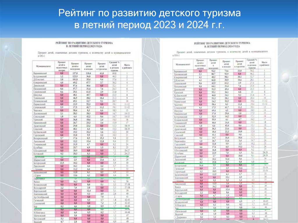 Рейтинг по развитию детского туризмав летний период 2023 и 2024 г.г.