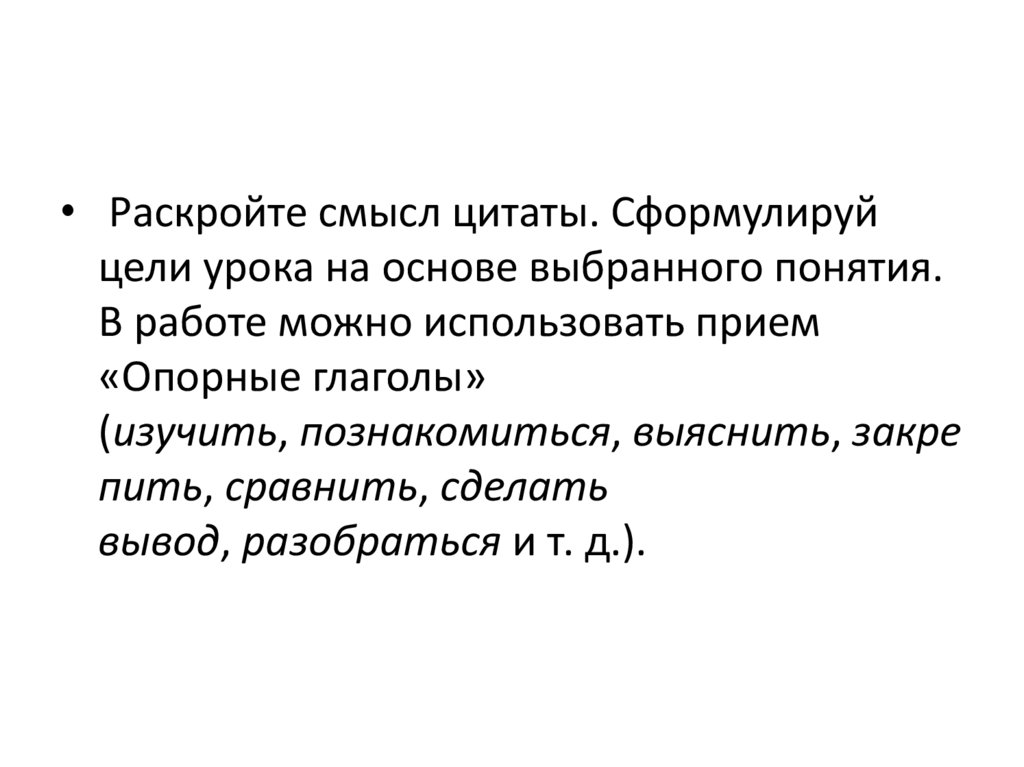 • Раскройте смысл цитаты. Сформулируйцели урока на основе выбранного понятия.