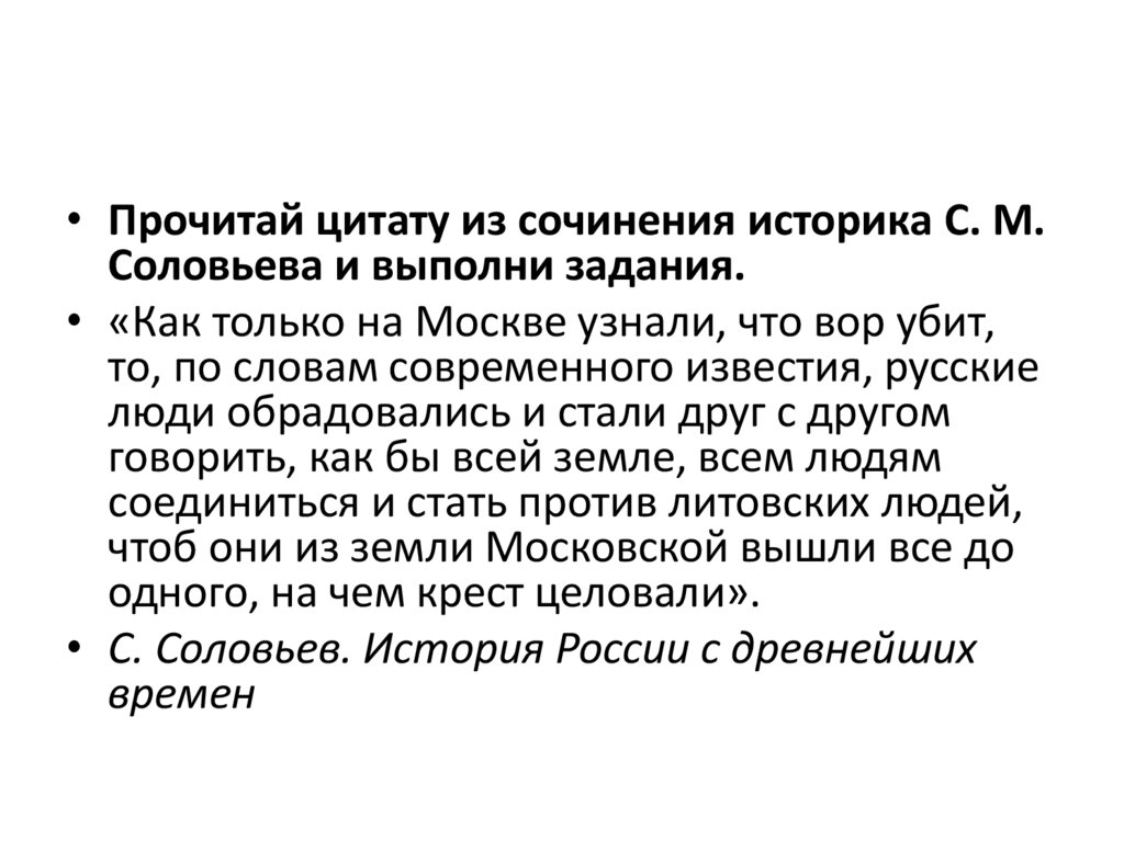 • Прочитай цитату из сочинения историка С. М.Соловьева и выполни задания.