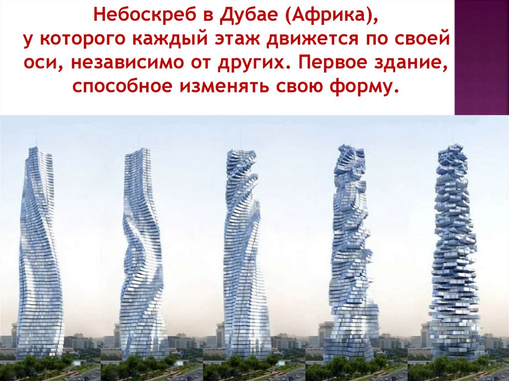Небоскреб в Дубае (Африка),у которого каждый этаж движется по своей