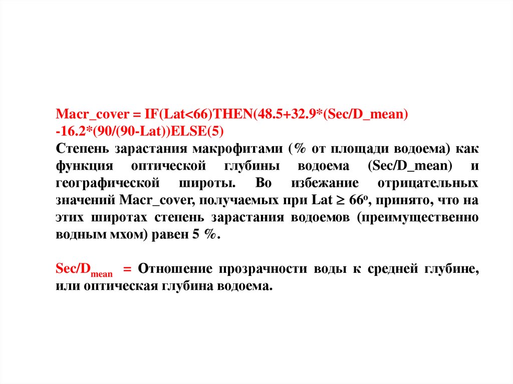 Macr_cover = IF(Lat<66)THEN(48.5+32.9*(Sec/D_mean)-16.2*(90/(90-Lat))ELSE(5)