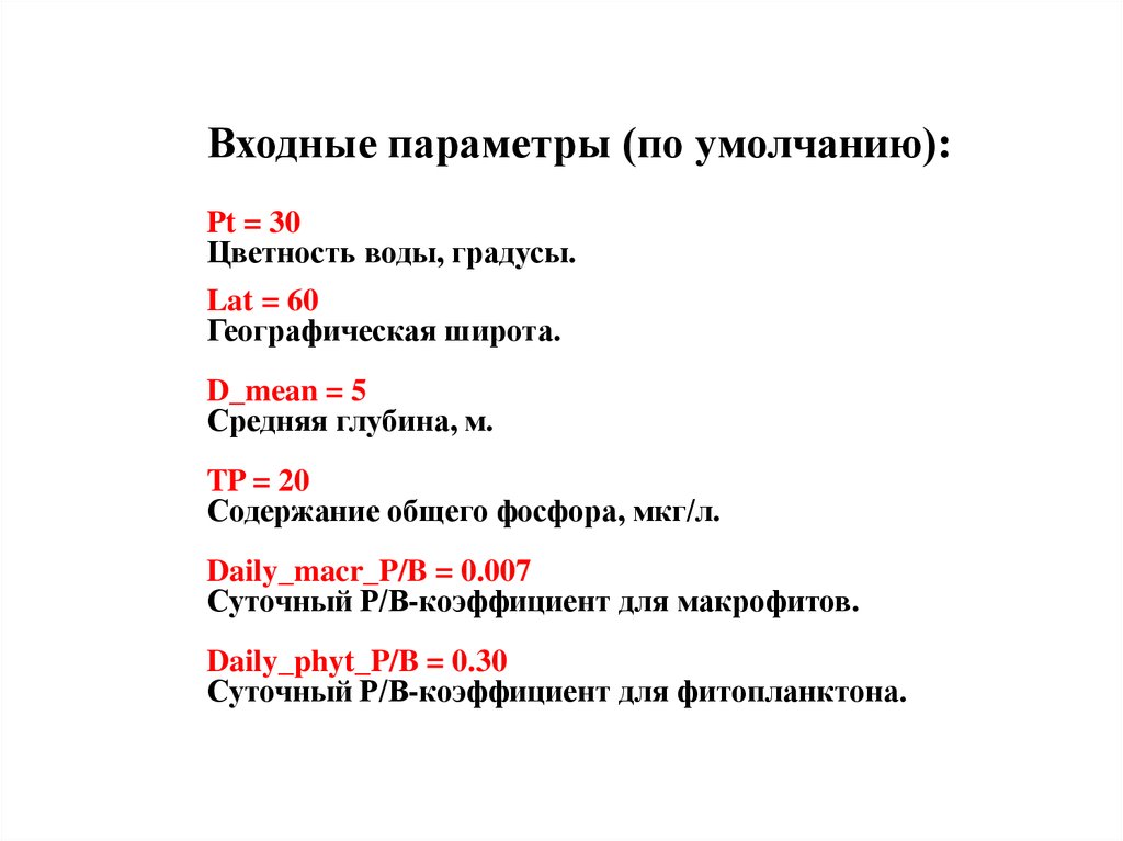 Входные параметры (по умолчанию):Pt = 30
