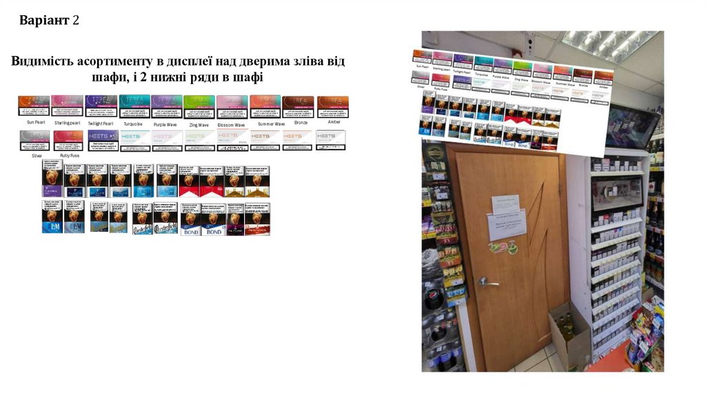 Варіант 2Видимість асортименту в дисплеї над дверима зліва від