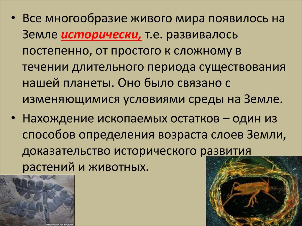 • Все многообразие живого мира появилось наЗемле исторически, т.е. развивалось