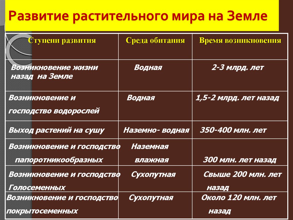 Развитие растительного мира на ЗемлеСтупени развития