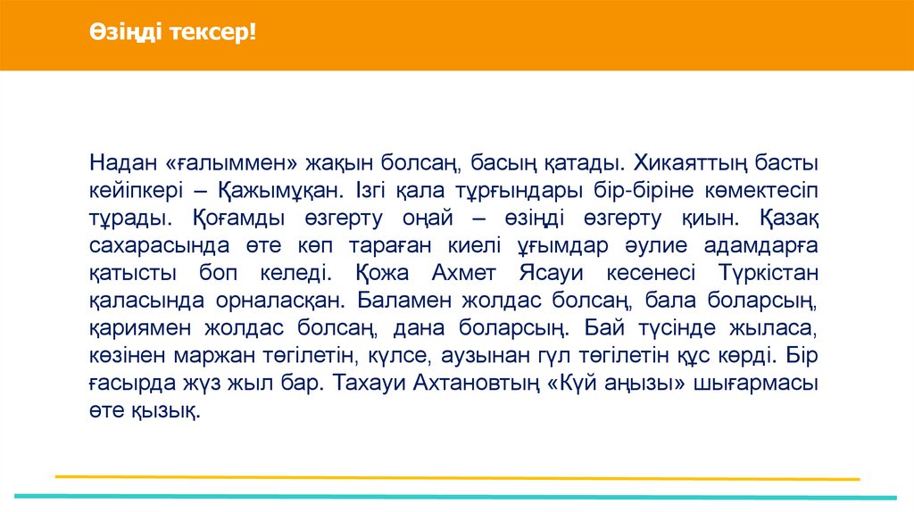 Өзіңді тексер!Надан «ғалыммен» жақын болсаң, басың қатады. Хикаяттың басты