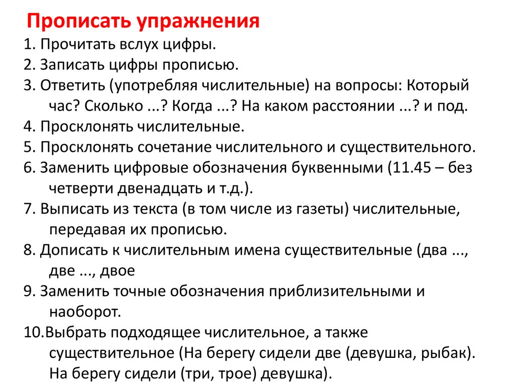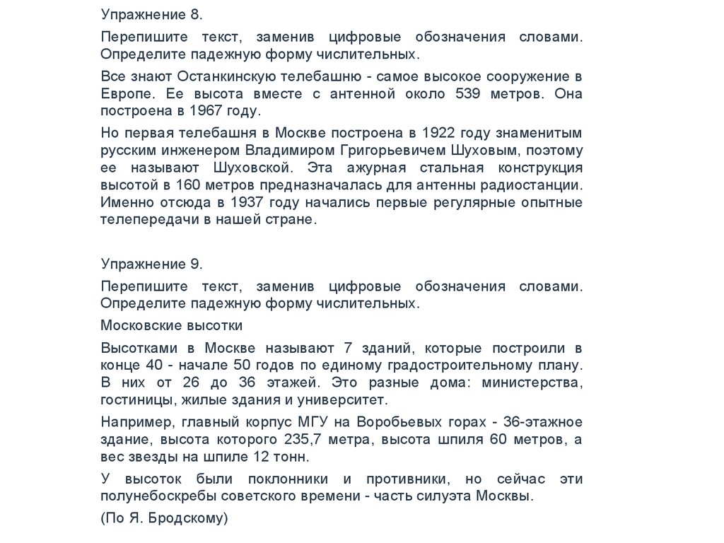 Упражнение 8.Перепишите текст, заменив цифровые обозначения словами.