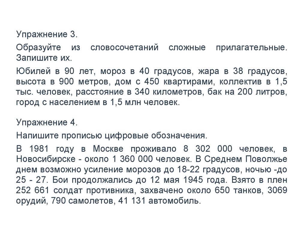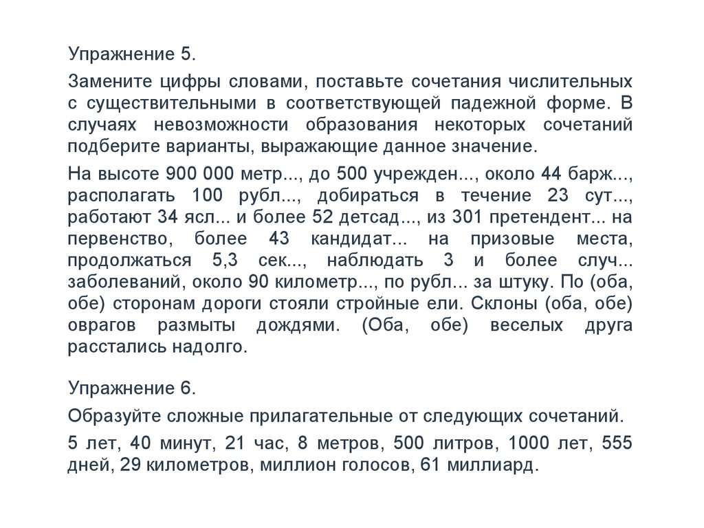 Упражнение 5.Замените цифры словами, поставьте сочетания числительных