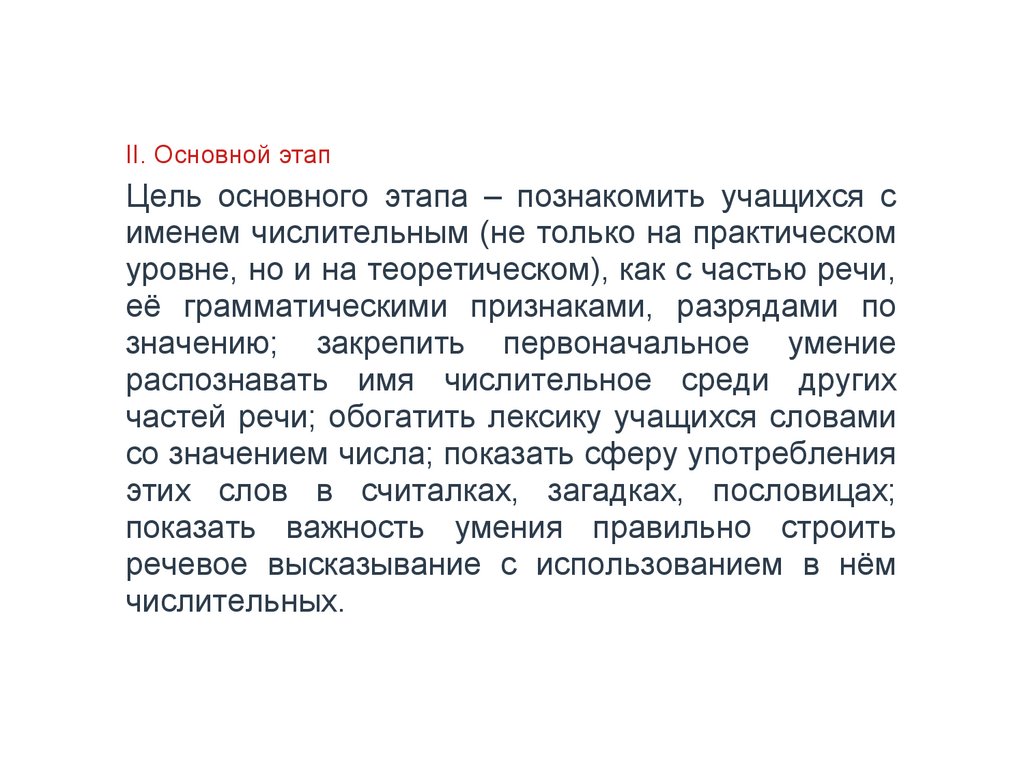 II. Основной этапЦель основного этапа – познакомить учащихся с