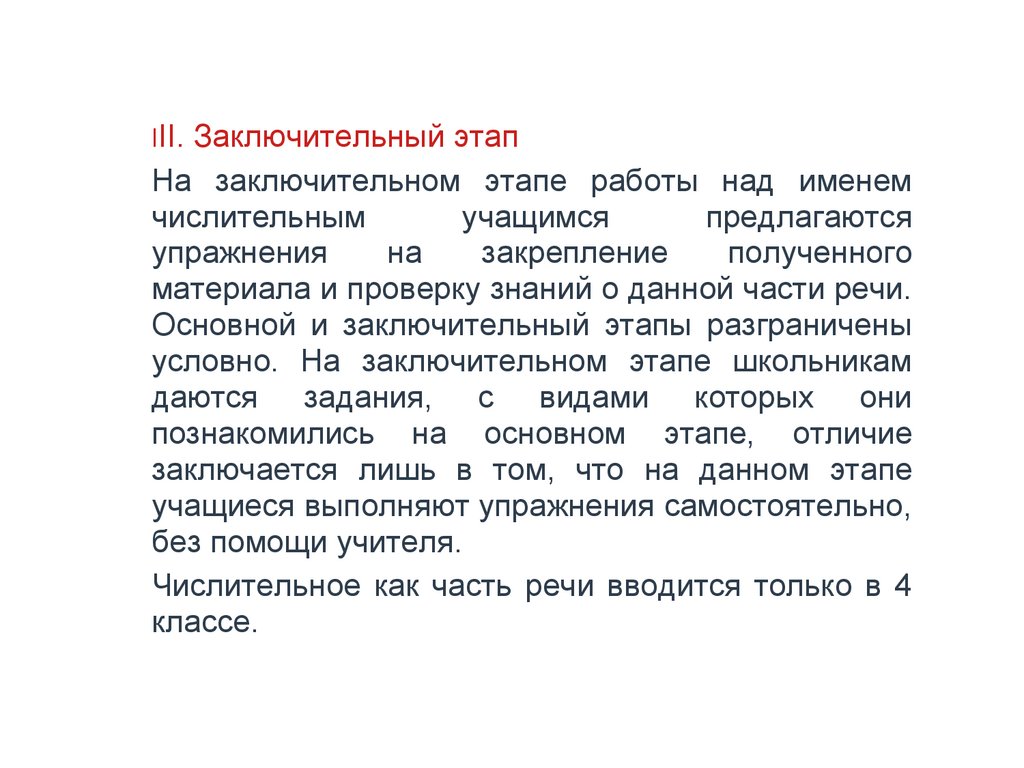 том, что учащиеся знакомятся с именами числительными