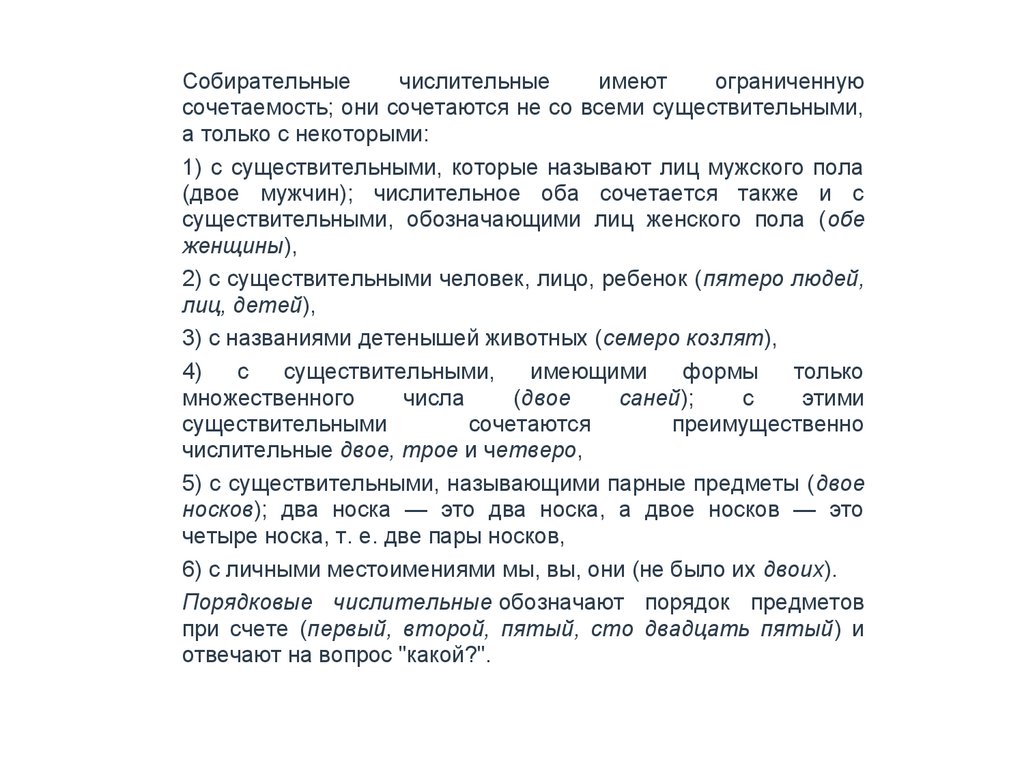 целое. К собирательным числительным относятся слова оба, двое, трое,