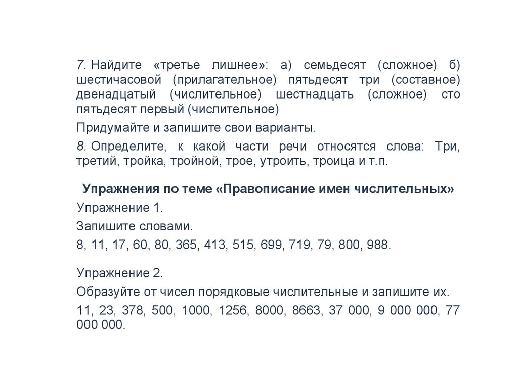 10.Выбрать подходящее числительное, а также