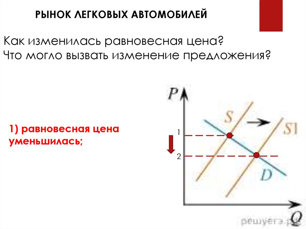 РЫНОК ЛЕГКОВЫХ АВТОМОБИЛЕЙКак изменилась равновесная цена?