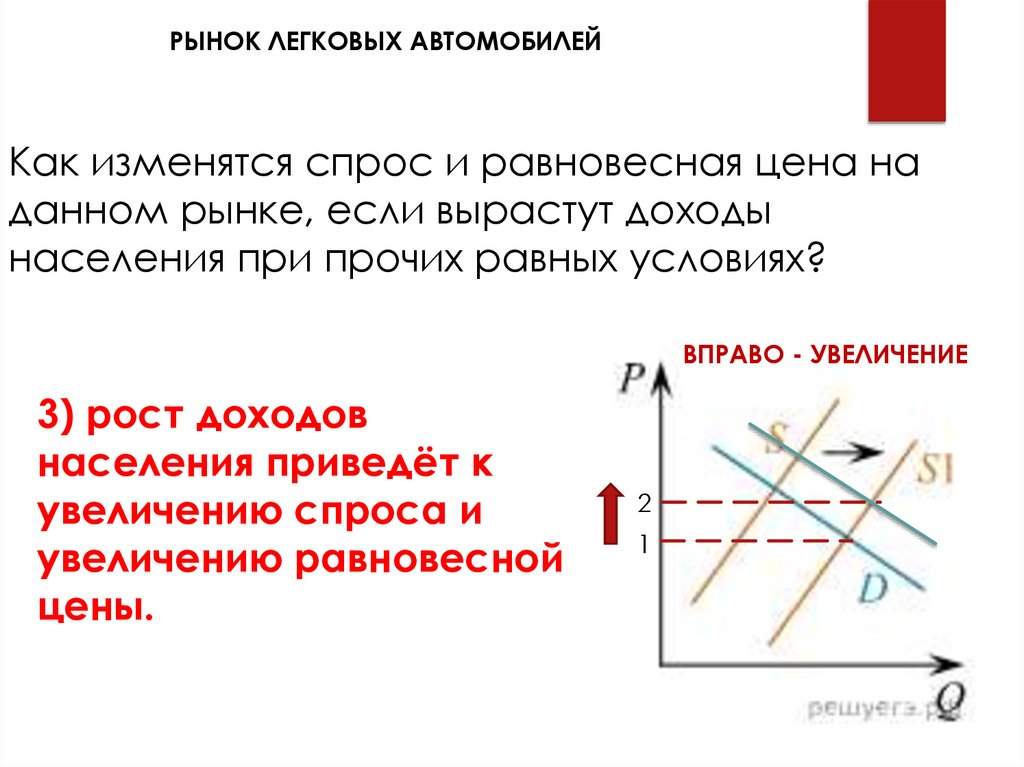 РЫНОК ЛЕГКОВЫХ АВТОМОБИЛЕЙКак изменятся спрос и равновесная цена на