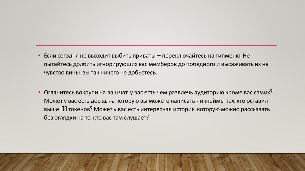 • Оглянитесь вокруг и на ваш чат: у вас есть чем развлечь аудиторию кроме вас самих?