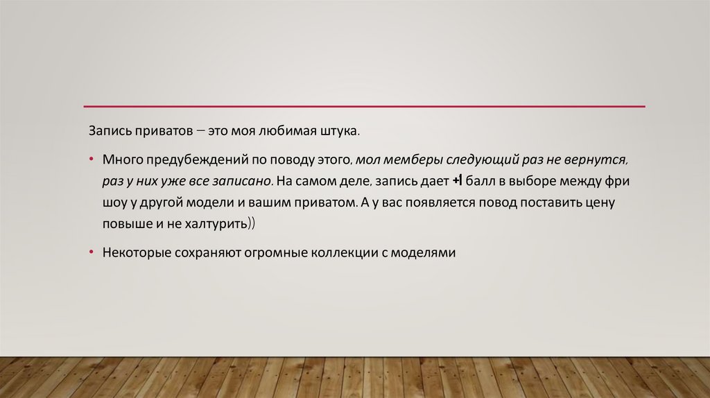 шоу у другой модели и вашим приватом. А у вас появляется повод поставить цену