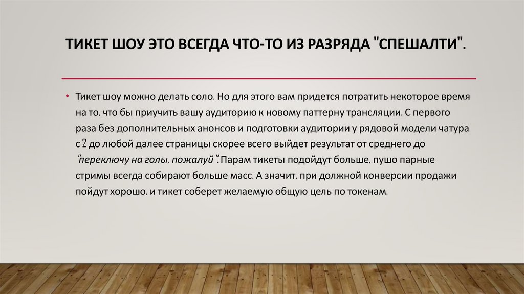 ТИКЕТ ШОУ ЭТО ВСЕГДА ЧТО-ТО ИЗ РАЗРЯДА "СПЕШАЛТИ".• Тикет шоу можно делать соло. Но для этого вам придется потратить некоторое время