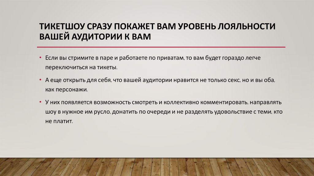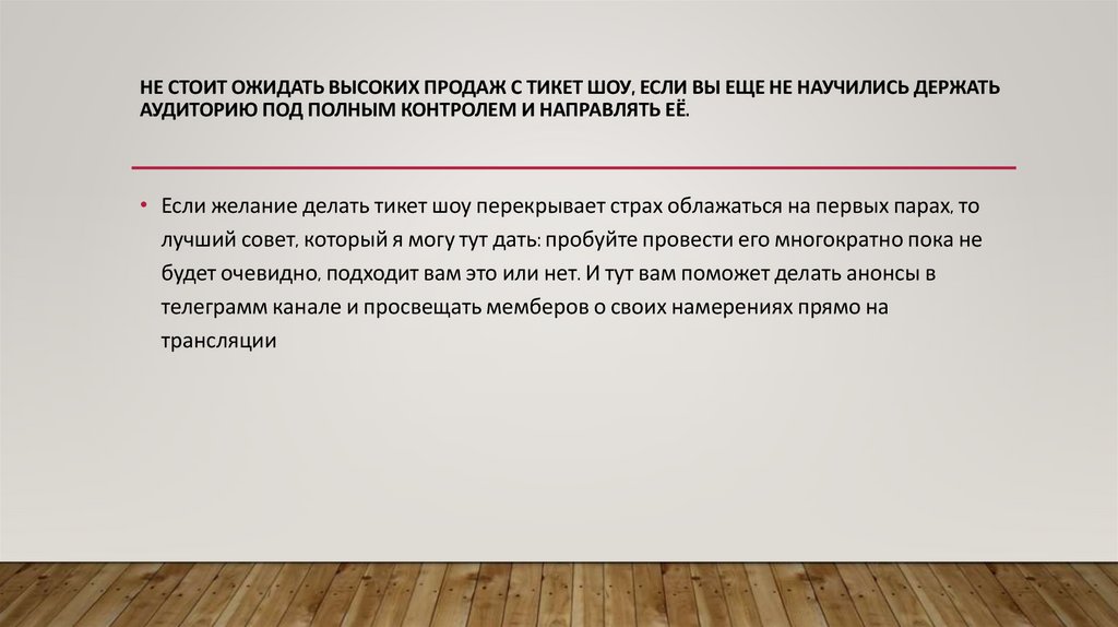 НЕ СТОИТ ОЖИДАТЬ ВЫСОКИХ ПРОДАЖ С ТИКЕТ ШОУ, ЕСЛИ ВЫ ЕЩЕ НЕ НАУЧИЛИСЬ ДЕРЖАТЬАУДИТОРИЮ ПОД ПОЛНЫМ КОНТРОЛЕМ И НАПРАВЛЯТЬ ЕЁ.