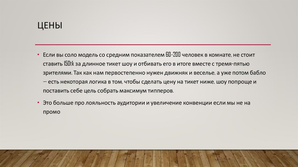 ЦЕНЫ• Если вы соло модель со средним показателем 60-200 человек в комнате, не стоит