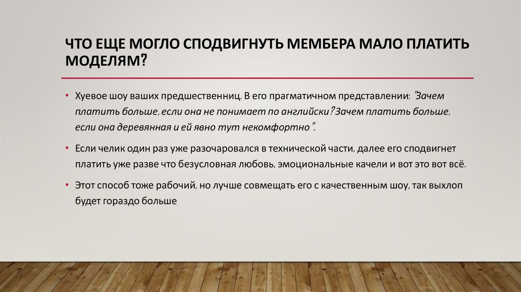 ЧТО ЕЩЕ МОГЛО СПОДВИГНУТЬ МЕМБЕРА МАЛО ПЛАТИТЬМОДЕЛЯМ?