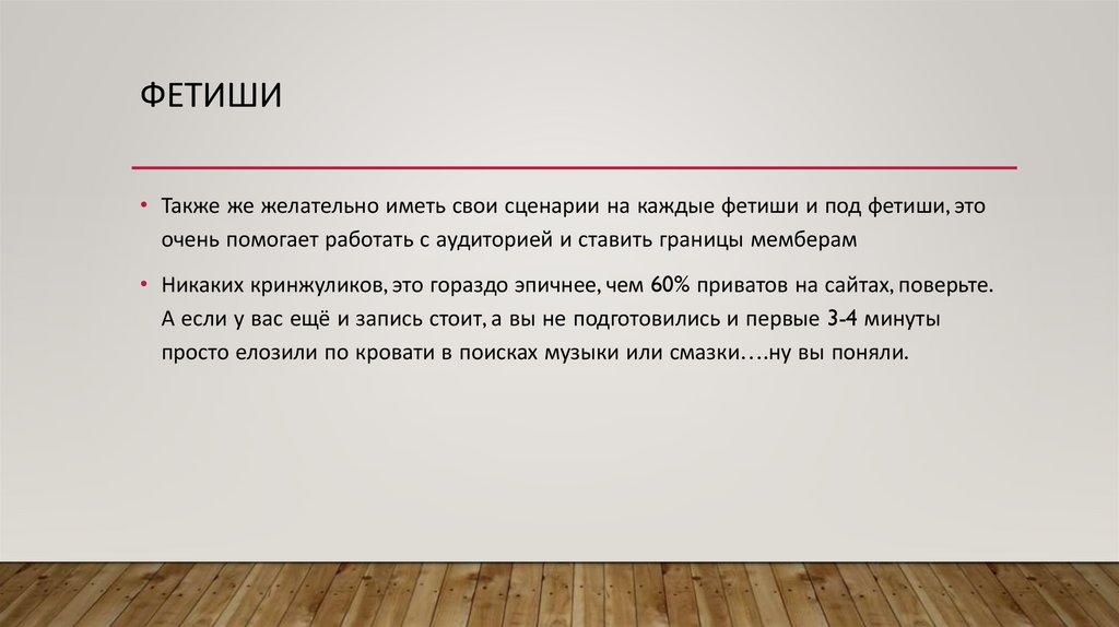 ФЕТИШИ• Также же желательно иметь свои сценарии на каждые фетиши и под фетиши, это