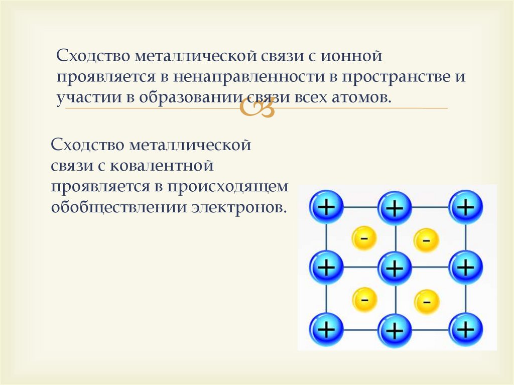 Сходство металлической связи с ионнойпроявляется в ненаправленности в пространстве и