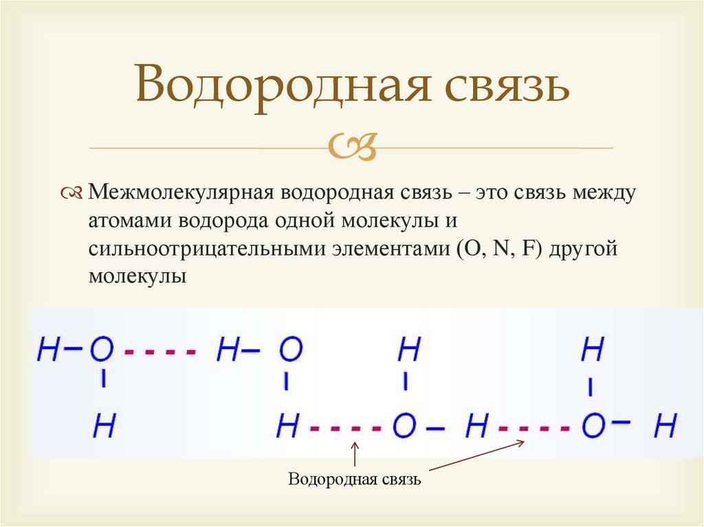 Водородная связьМежмолекулярная водородная связь – это связь между
