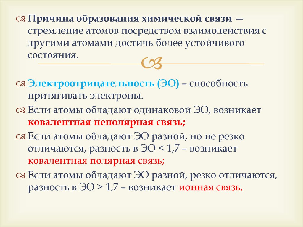 Причина образования химической связи —стремление атомов посредством взаимодействия с