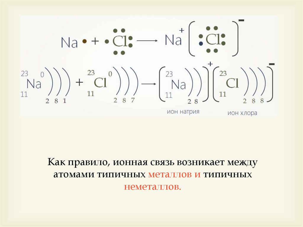 Как правило, ионная связь возникает междуатомами типичных металлов и типичных