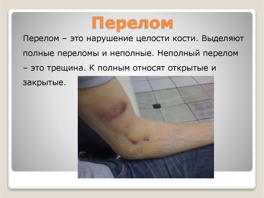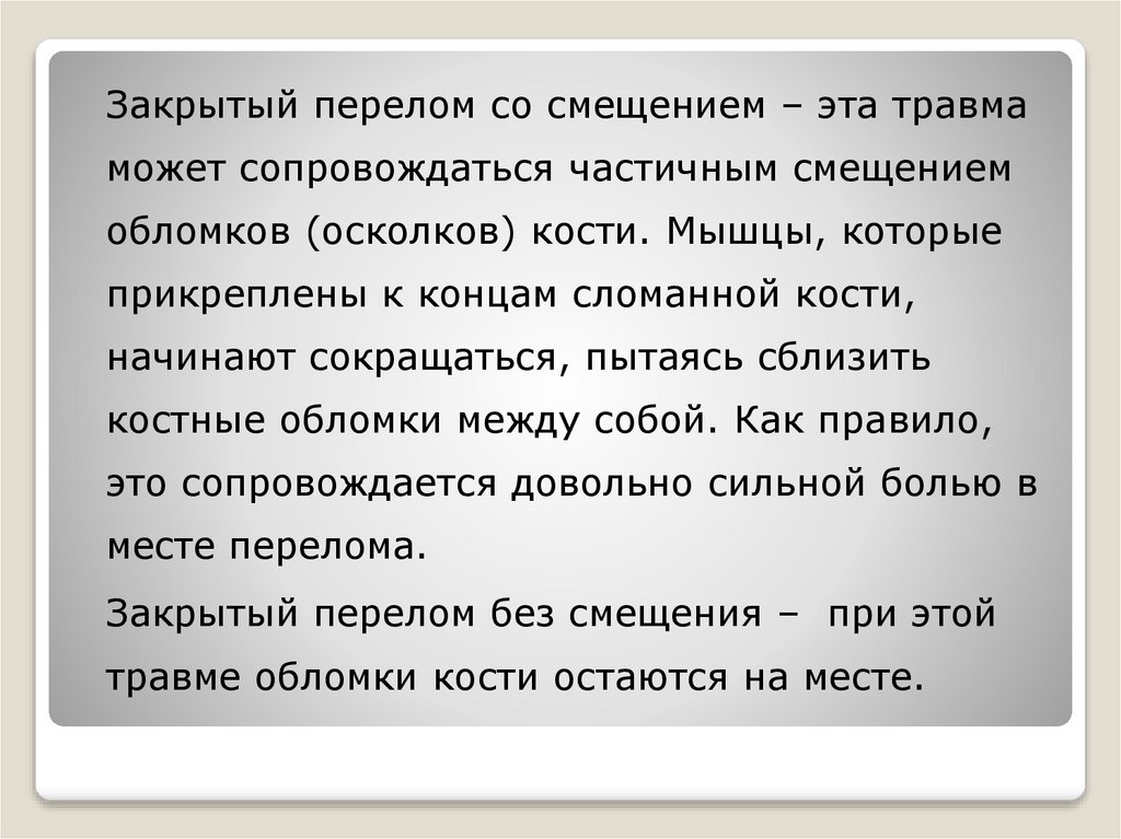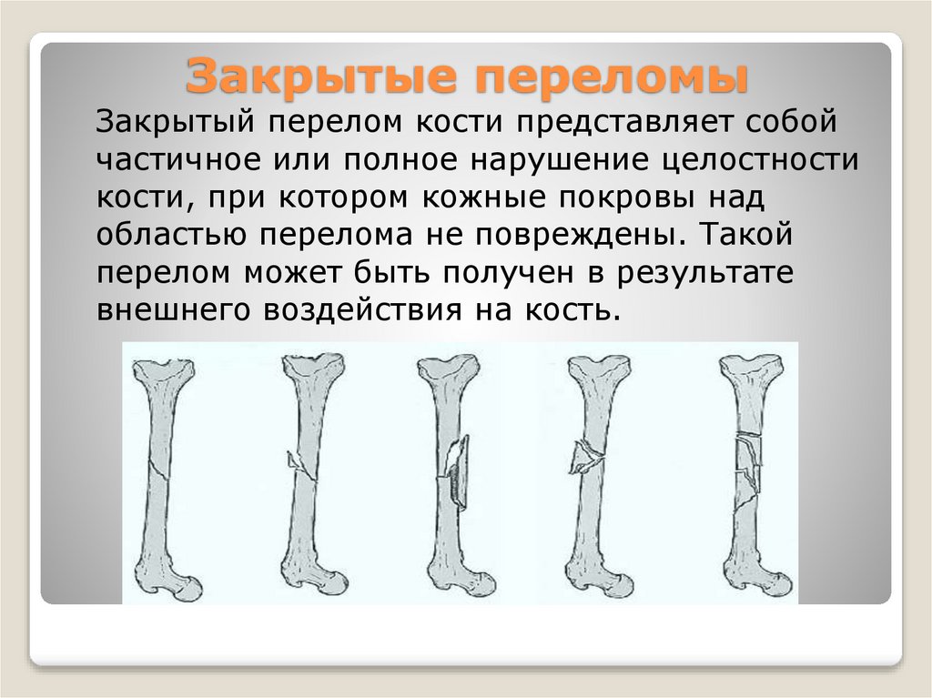 Закрытые переломыЗакрытый перелом кости представляет собой