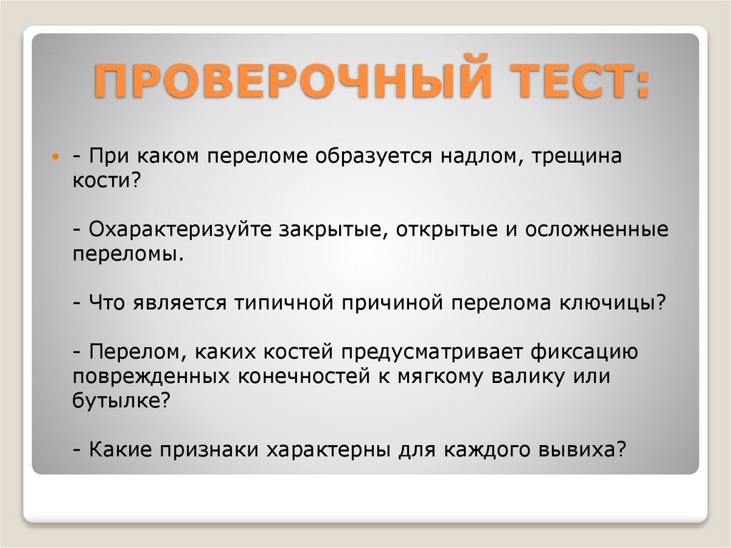 ПРОВЕРОЧНЫЙ ТЕСТ:- При каком переломе образуется надлом, трещина