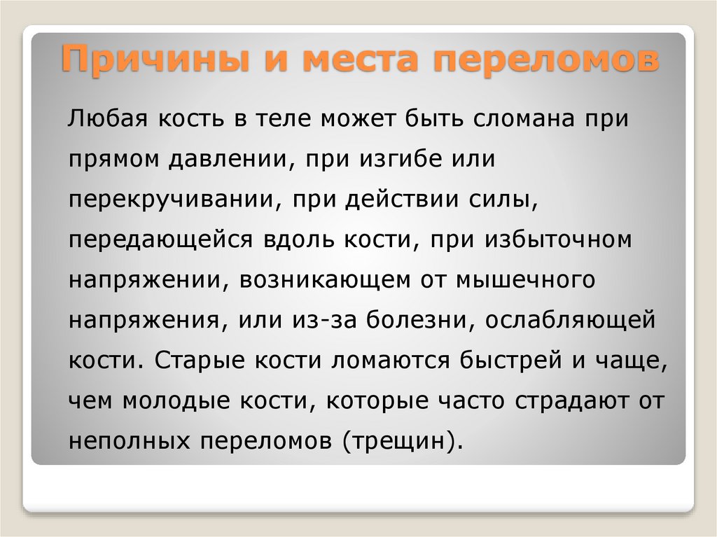 Причины и места переломовЛюбая кость в теле может быть сломана при
