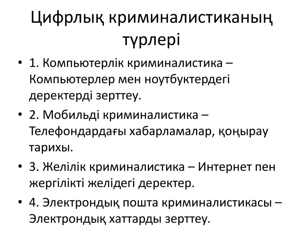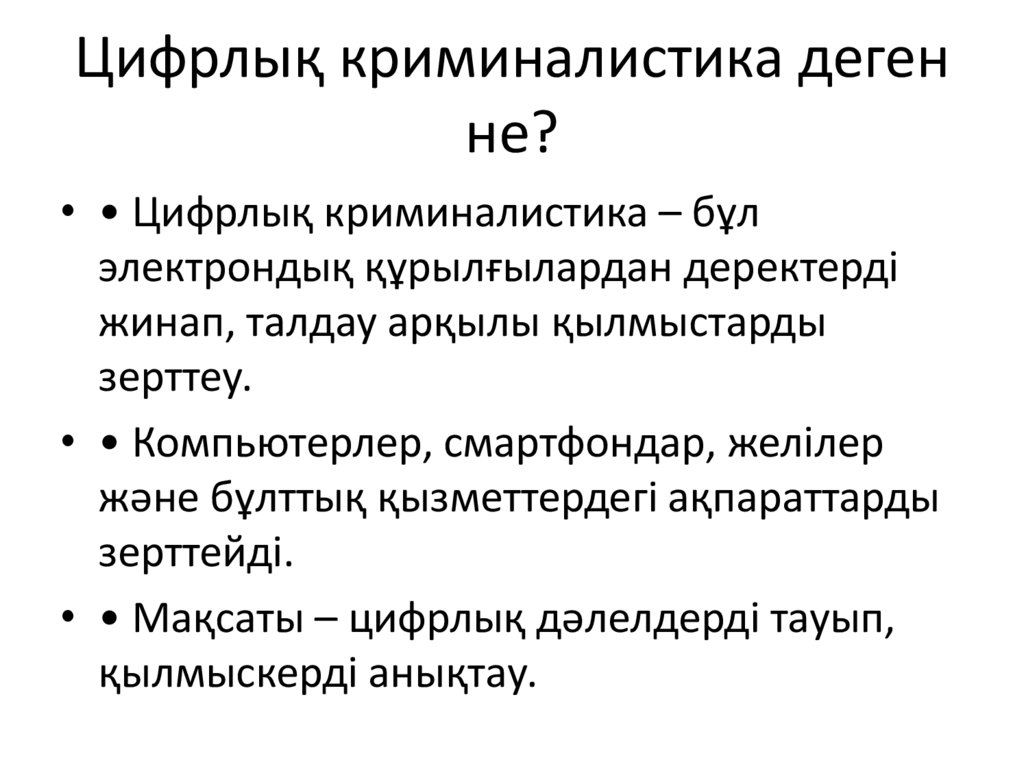 • • Мақсаты – цифрлық дәлелдерді тауып,