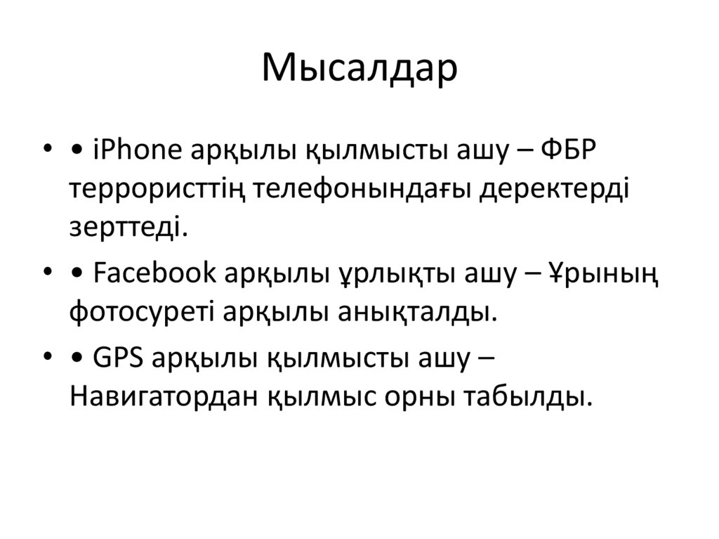 Мысалдар• • iPhone арқылы қылмысты ашу – ФБР