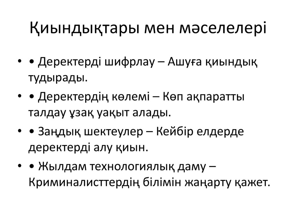 Қиындықтары мен мәселелері• • Деректерді шифрлау – Ашуға қиындық