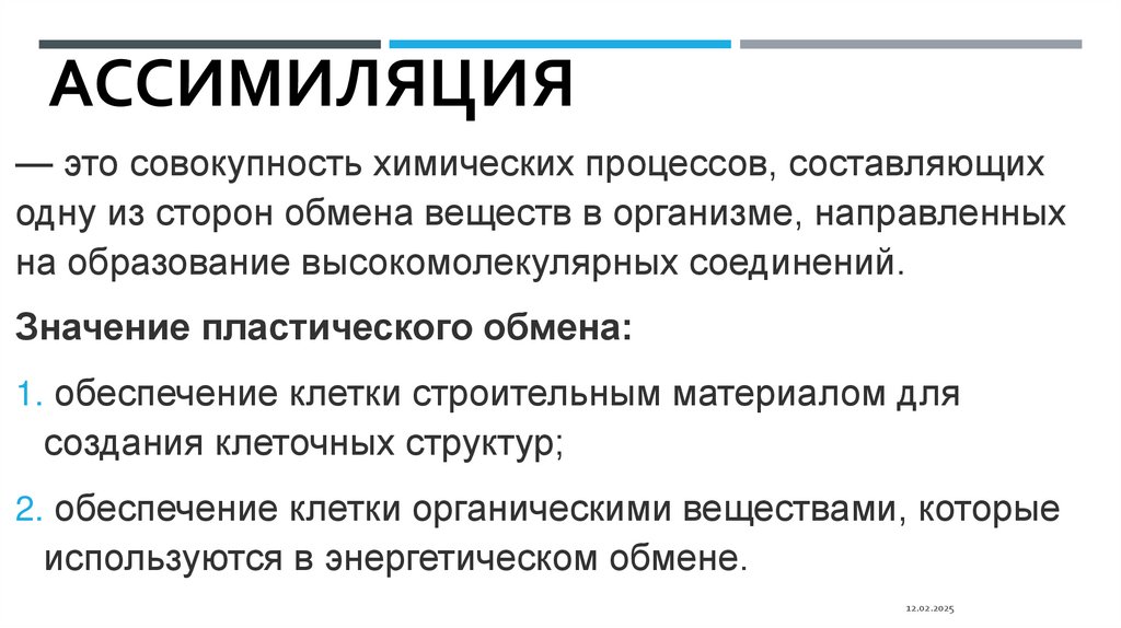 АССИМИЛЯЦИЯ— это совокупность химических процессов, составляющих