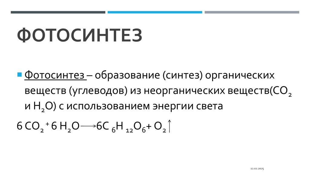 ФОТОСИНТЕЗФотосинтез – образование (синтез) органических