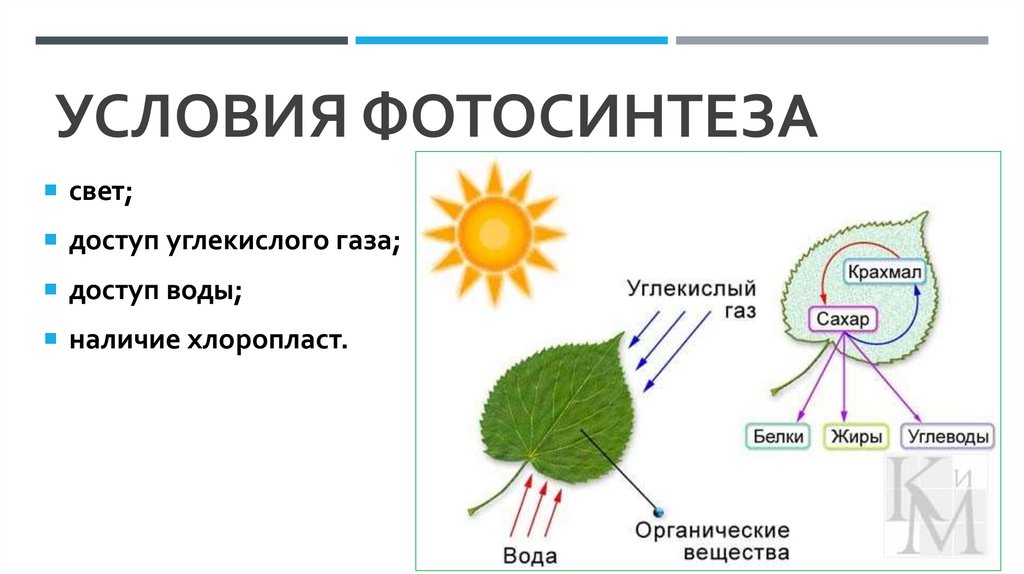 УСЛОВИЯ ФОТОСИНТЕЗАсвет;