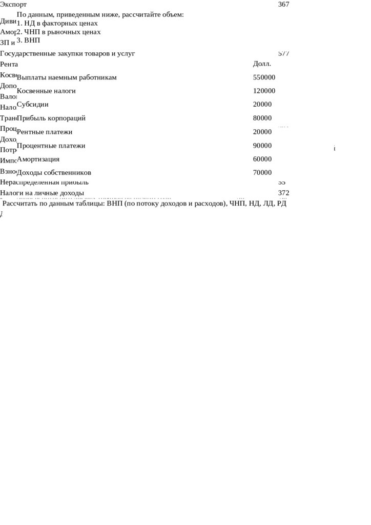 Рассчитать по данным таблицы: ВНП (по потоку доходов и расходов), ЧНП, НД, ЛД, РД