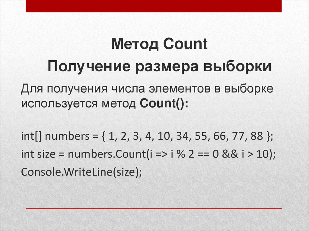 Метод CountПолучение размера выборки