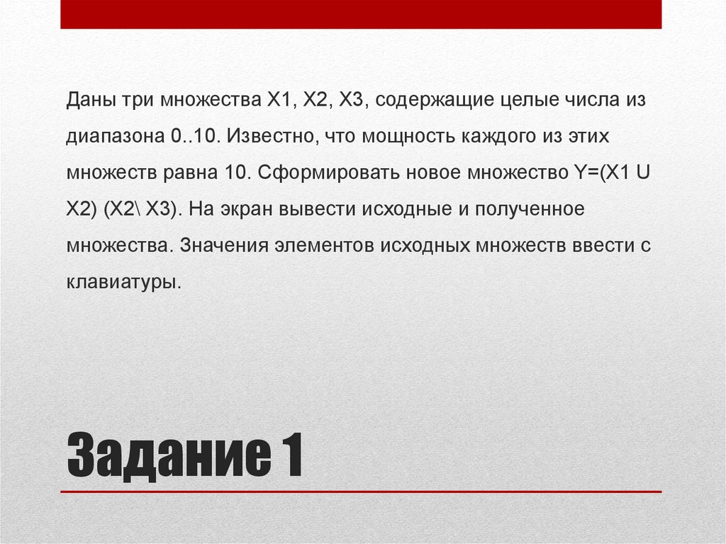 множеств равна 10. Сформировать новое множество Y=(Х1 U