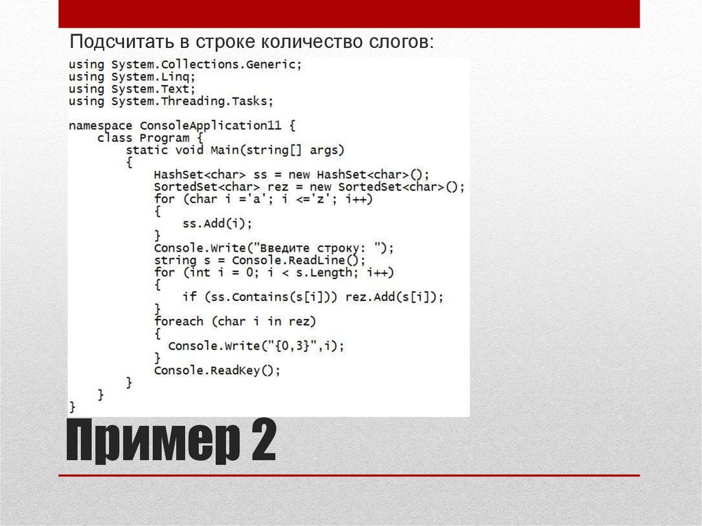 Подсчитать в строке количество слогов:Пример 2