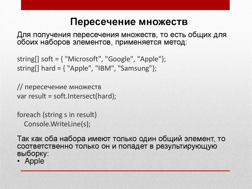 Операции с множествами в C# Классы HashSet и SortedSet