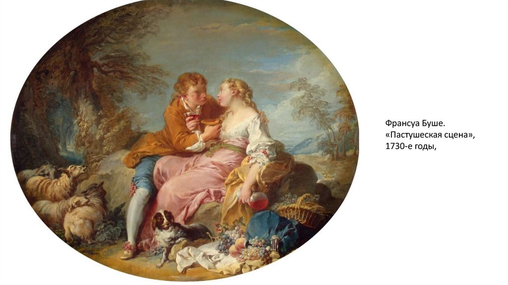барочное неприятие естественности сменилось ориентацией на «естественные радости жизни», в частности — сельскую атрибутику (тут надо