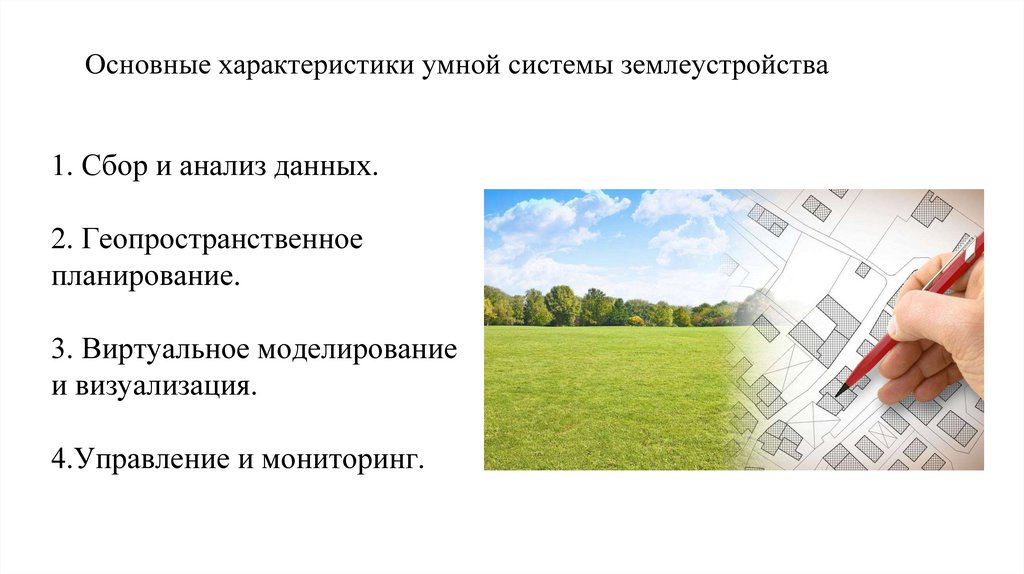 Основные характеристики умной системы землеустройства1. Сбор и анализ данных.