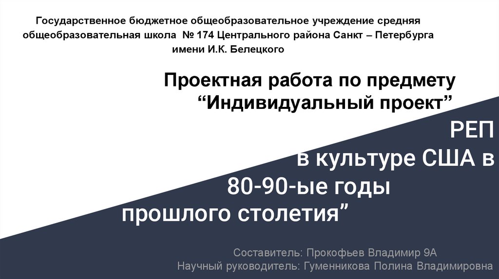Государственное бюджетное общеобразовательное учреждение средняяобщеобразовательная школа № 174 Центрального района Санкт – Петербурга