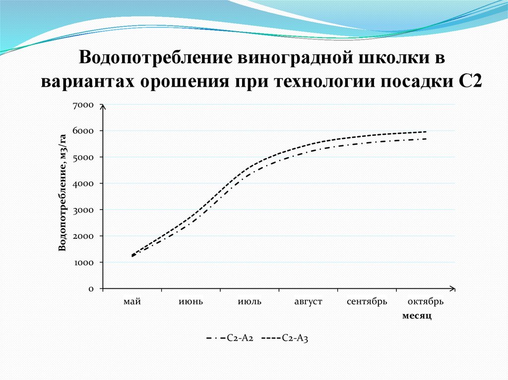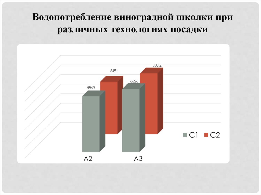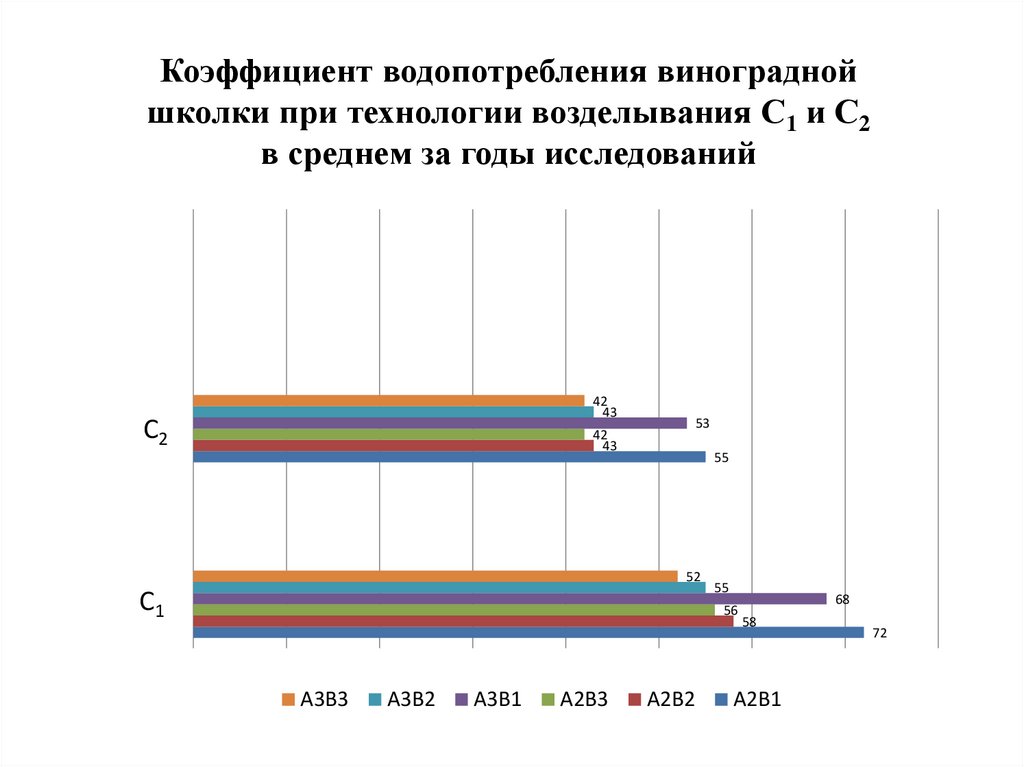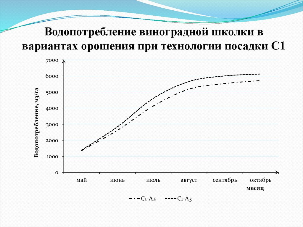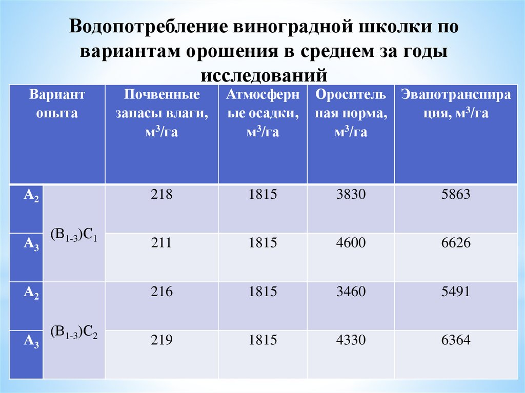 среднесуточного водопотребления виноградных саженцев по вариантам