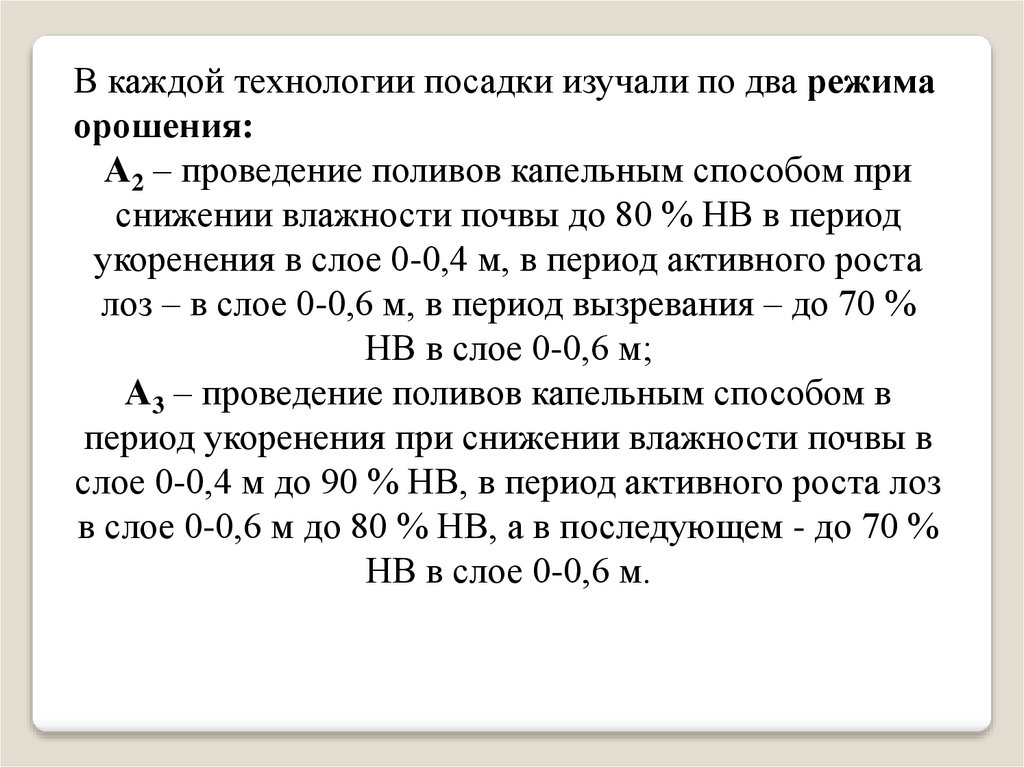 лоз, а в дальнейшем 70 % НВ в слое 0,0-0,6 м – при при бороздковой посадке черенков в