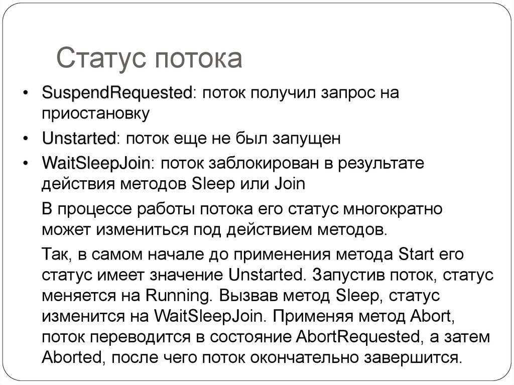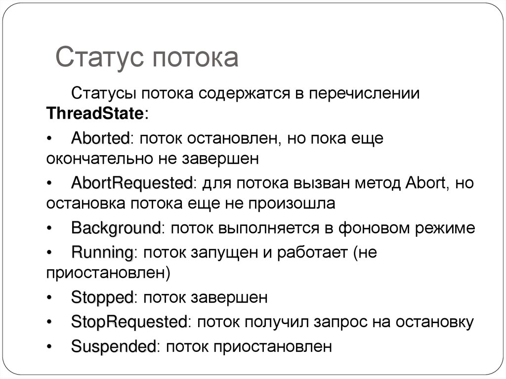 Статус потокаСтатусы потока содержатся в перечислении