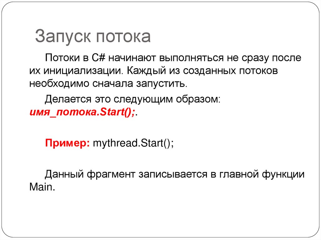 Пример: mythread.Start();